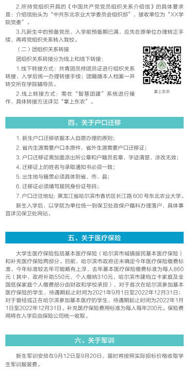 东北农业大学迎新系统及网站入口 2021新生入学须知及注意事项 2021-08-01 13:54 高考录取通知书发放后,同学们就要着手准备大学入学的相关事宜了,下面是东北农业大学迎新网入口及新生入学注意事项等内容,供大家查阅。东北农业大学迎新系统及网站入口点击图片,进入迎新网新生入学须知及注意事项 推荐阅读: 四川2024下半年教资面试报名时间 哪天报名 2024江苏下半年教资面试报名条件 哪些考生可以报名 江苏2024下半年教资面试时间 几月几号考试 江苏2024下半年教资面试报名时间 哪天报名 高级研修班 提升你的职业竞争力