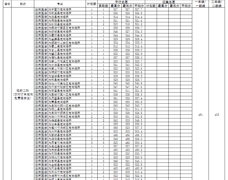 | 河南 | 安徽医科大学 | 理科 | 532 |