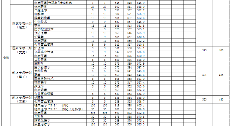 | 安徽 | 安徽医科大学临床医学院 | 文科 | 534 |