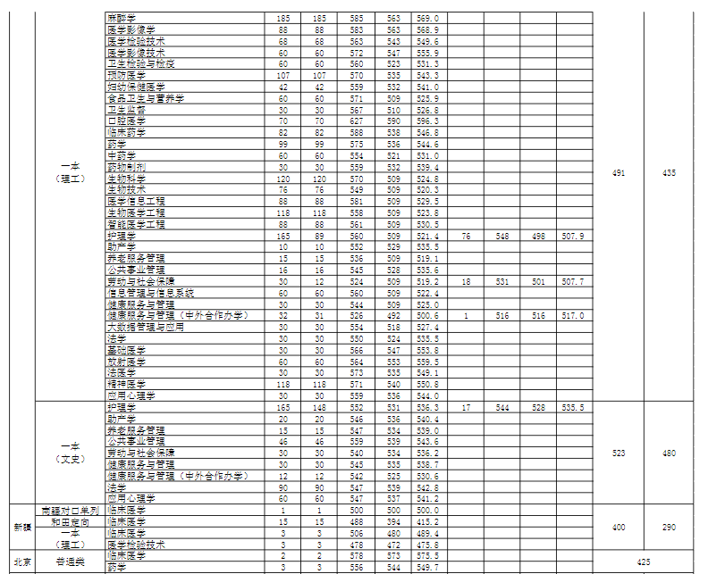 | 北京 | 安徽医科大学 | 综合 | 533 |
