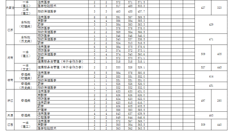 | 江西 | 安徽医科大学 | 理科 | 574 |