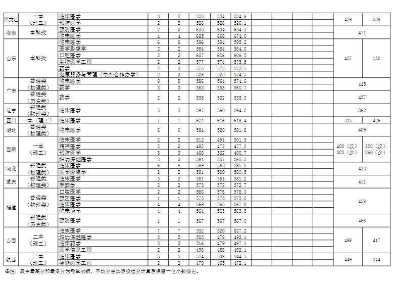| 山西 | 安徽医科大学 | 理科 | 506 |