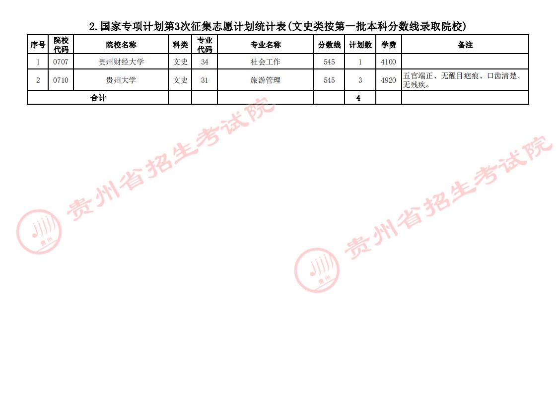 2.国家专项计划第3次征集志愿计划统计表(文史类按第一批本科分数线录取院校)
