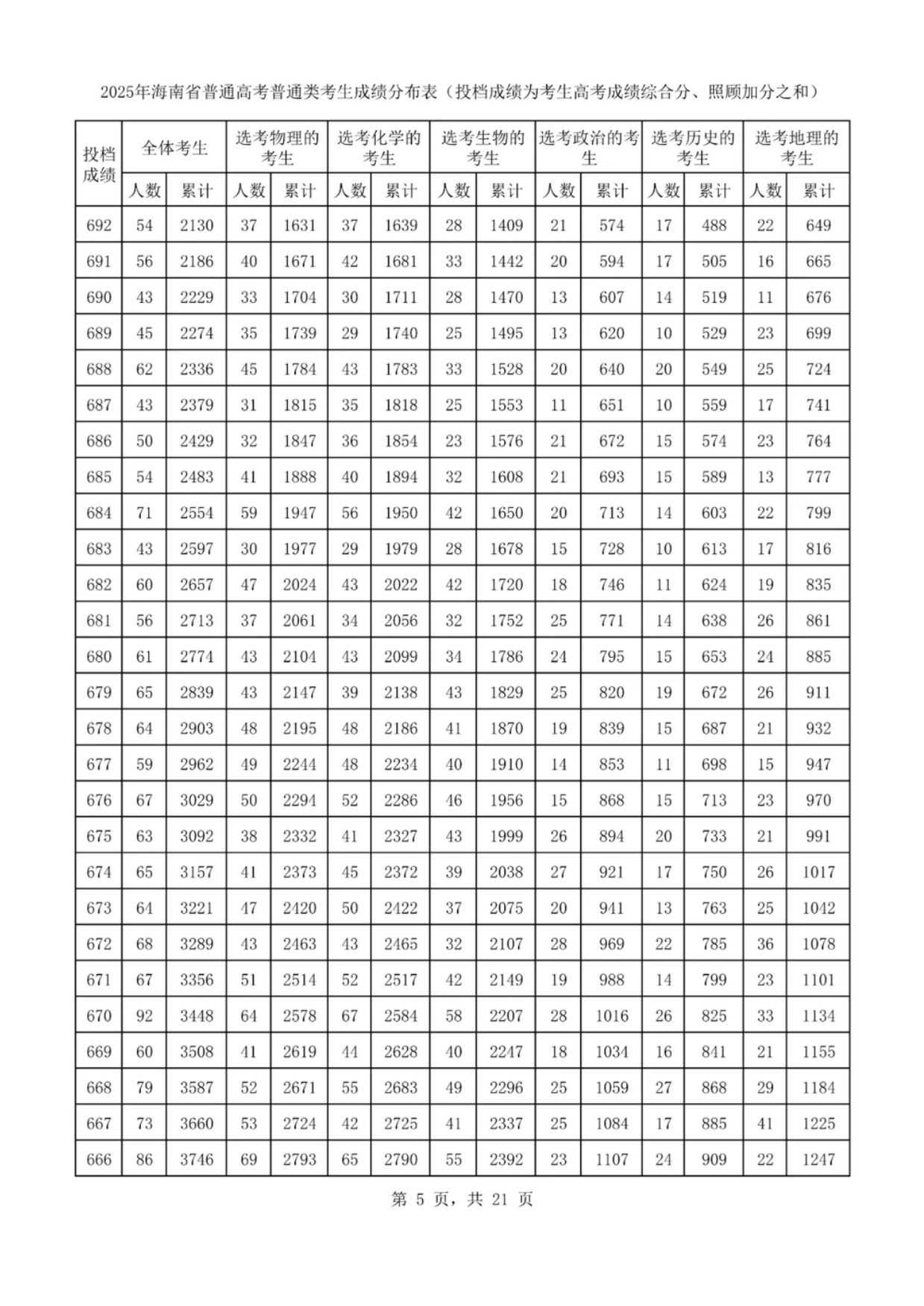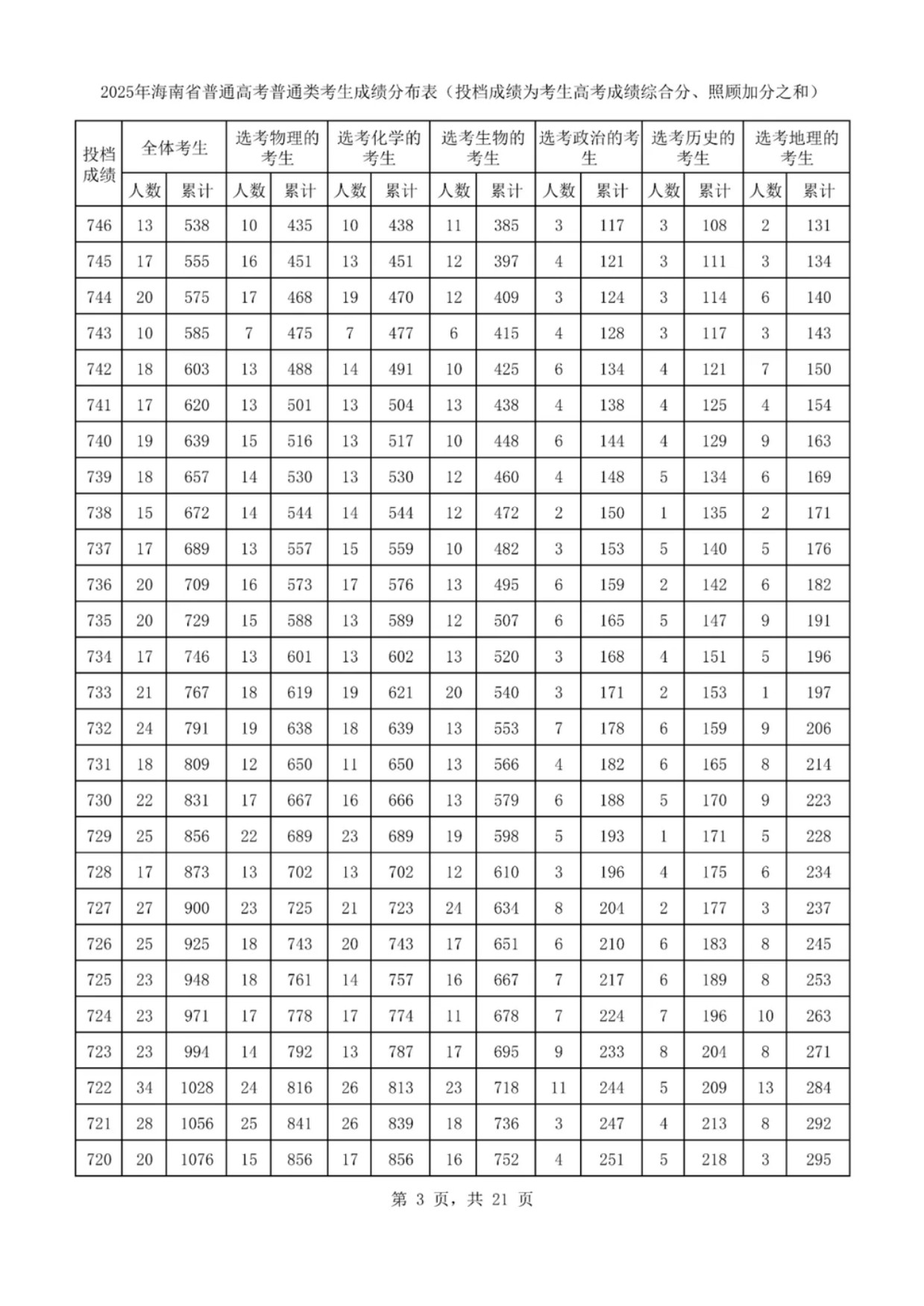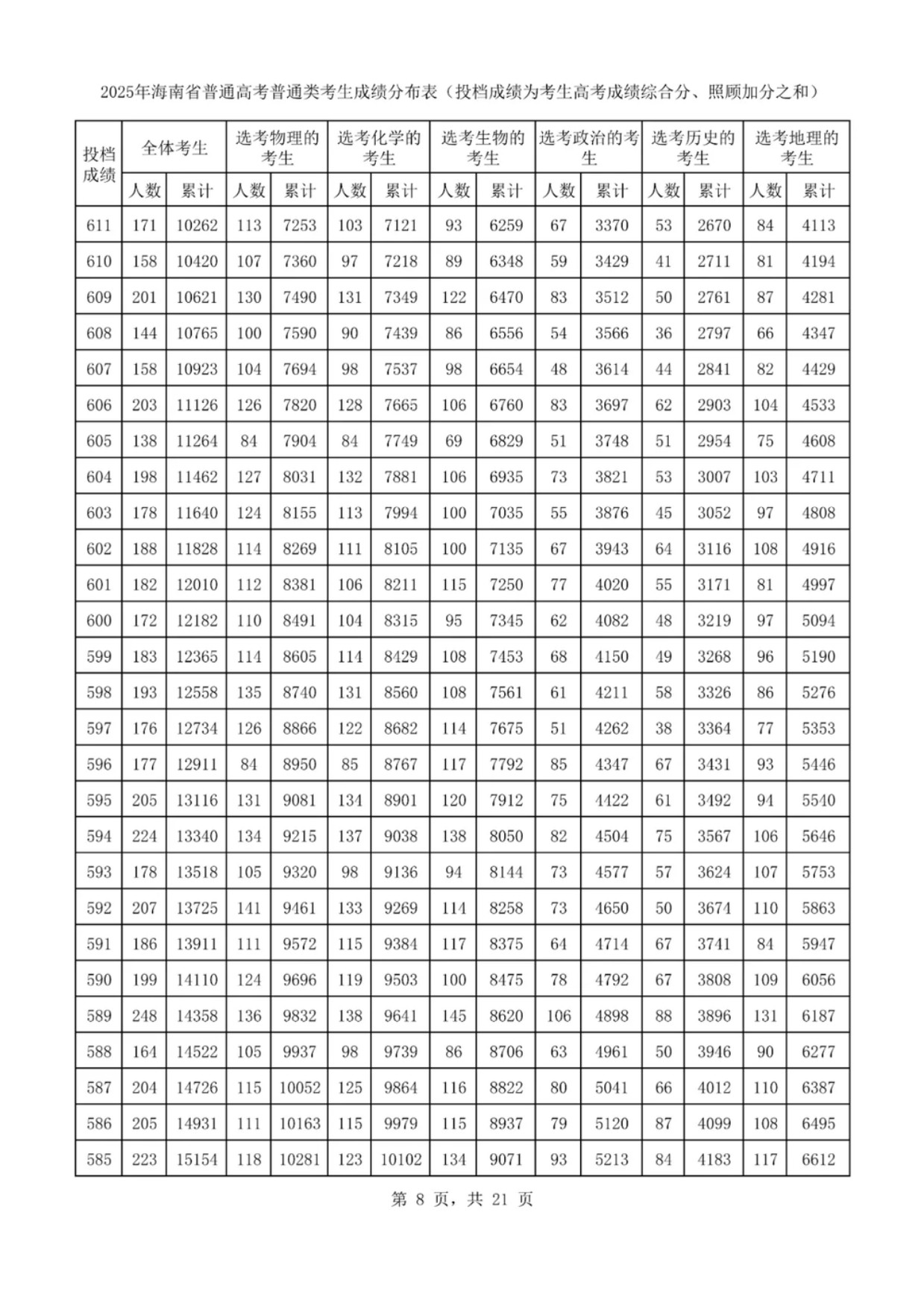 海南高考一分一段表 附位次排名对应大学(2026年参考)