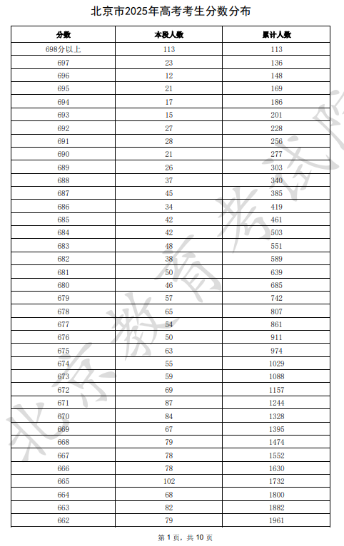 对于2026年北京高考考生而言,一分一段表是志愿填报的重要凭据,考生可以根据自己的位次和往年分数线,来科学的选择自己的目标高校与专业,也可以用来判断自己被心仪的高校录取的概率,降低自己退档的风险。下面为2025年高考一分一段表,为大家带来各分数对应位次排名情况:
