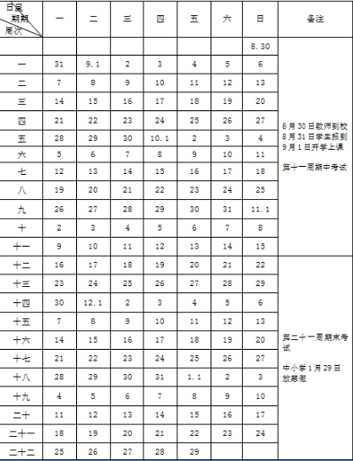 开学时间:我市中小学幼儿园,新学期于9月1日开学,教职工于8月30日回校报到,学生于8月31日报到。