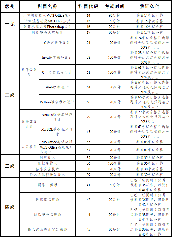 2、2022年有部分科目考试大纲进行了修订,详见《2022年全国计算机等级考试考试大纲目录、教材目录》(附件1)。