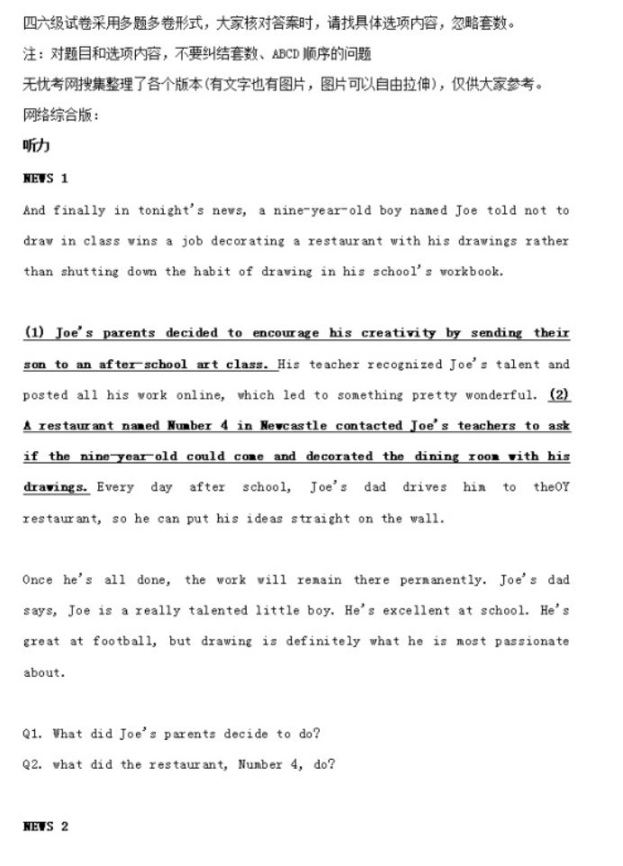 五米高考为您提供2021年6月英语四级真题及完整答案...